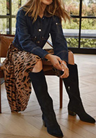 - Tall boots → knee-high styles paired with skirts and dresses, or worn over slim jeans. Equestrian, Western and block-heel versions are all good.