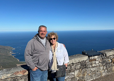 The result? Effortless outfits that looked polished in photos, felt comfortable on long adventures, and worked from dawn game drives to evening dinners. Below, my client and her husband at Table Mountain in South Africa!